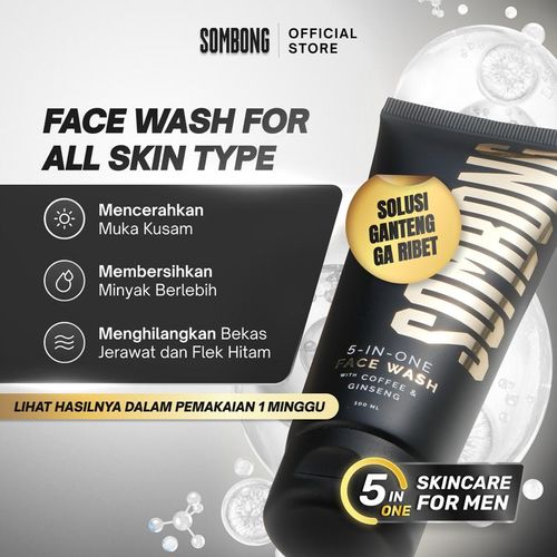 SOMBONG 5-in-1 Face Wash With Coffee & Ginseng 100ml Sabun Muka Pria Membersihkan Mencerahkan Wajah Menthol 2 sales